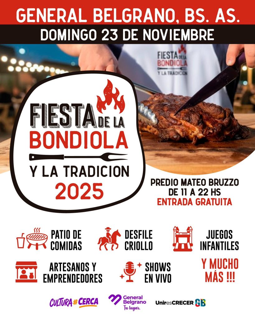 General Belgrano ya empieza a palpitar una de sus fiestas más queridas: la Fiesta de la Bondiola y la Tradición, que se viene con todo este domingo 23 de noviembre en el predio Mateo Bruzzo, a orillas del Río Salado.